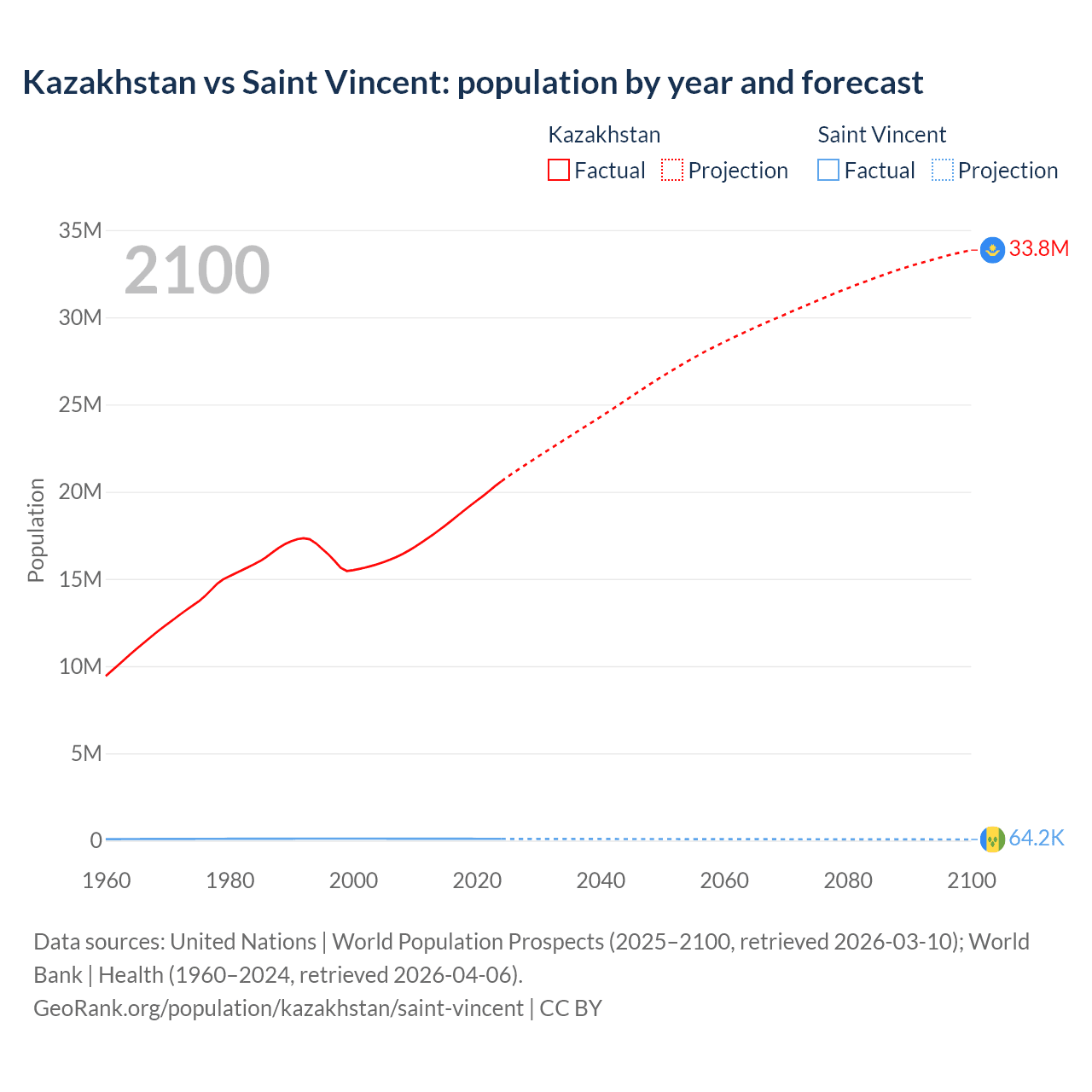 Kazakhstan vs Saint Vincent: population by year and forecast