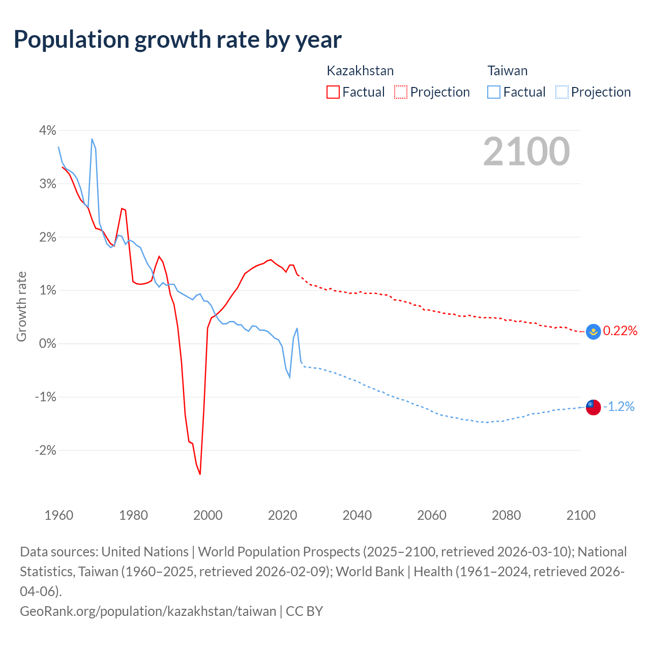 Data sources: World Bank | Health (1960–2024, retrieved 2026-04-06); United Nations | World Population Prospects (1960–2026, retrieved 2026-03-10); U.S. Census Bureau (1960–2025, retrieved 2026-02-08); National Statistics, Taiwan (1960–2025, retrieved 2026-02-09); Central Intelligence Agency (CIA) (2000–2019, retrieved 2026-02-20).