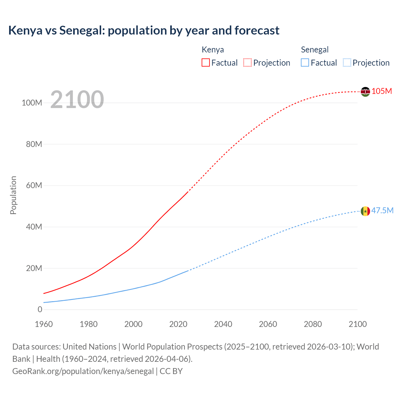 Kenya vs Senegal: population by year and forecast
