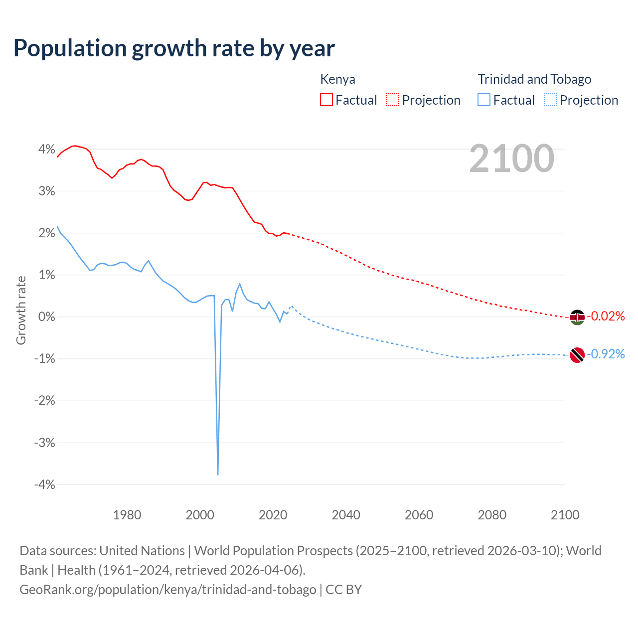 - For the last 10 years, Kenya has had an average growth rate of +2.08% per year vs +0.19% in Trinidad and Tobago.