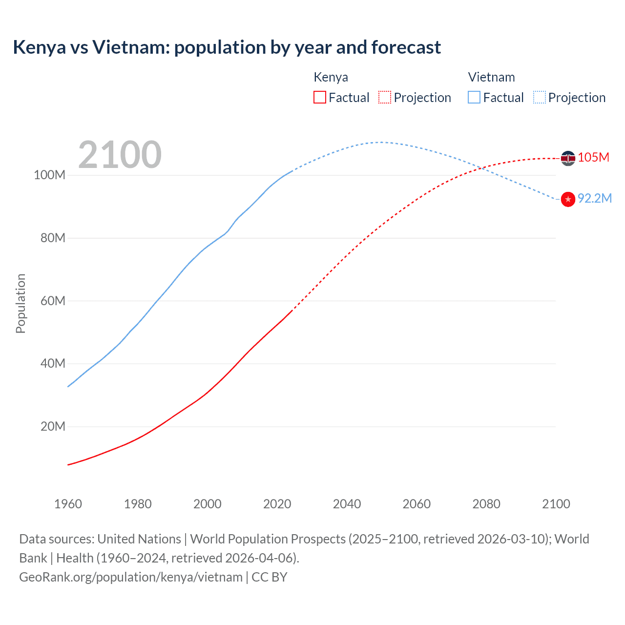 Kenya vs Vietnam: population by year and forecast