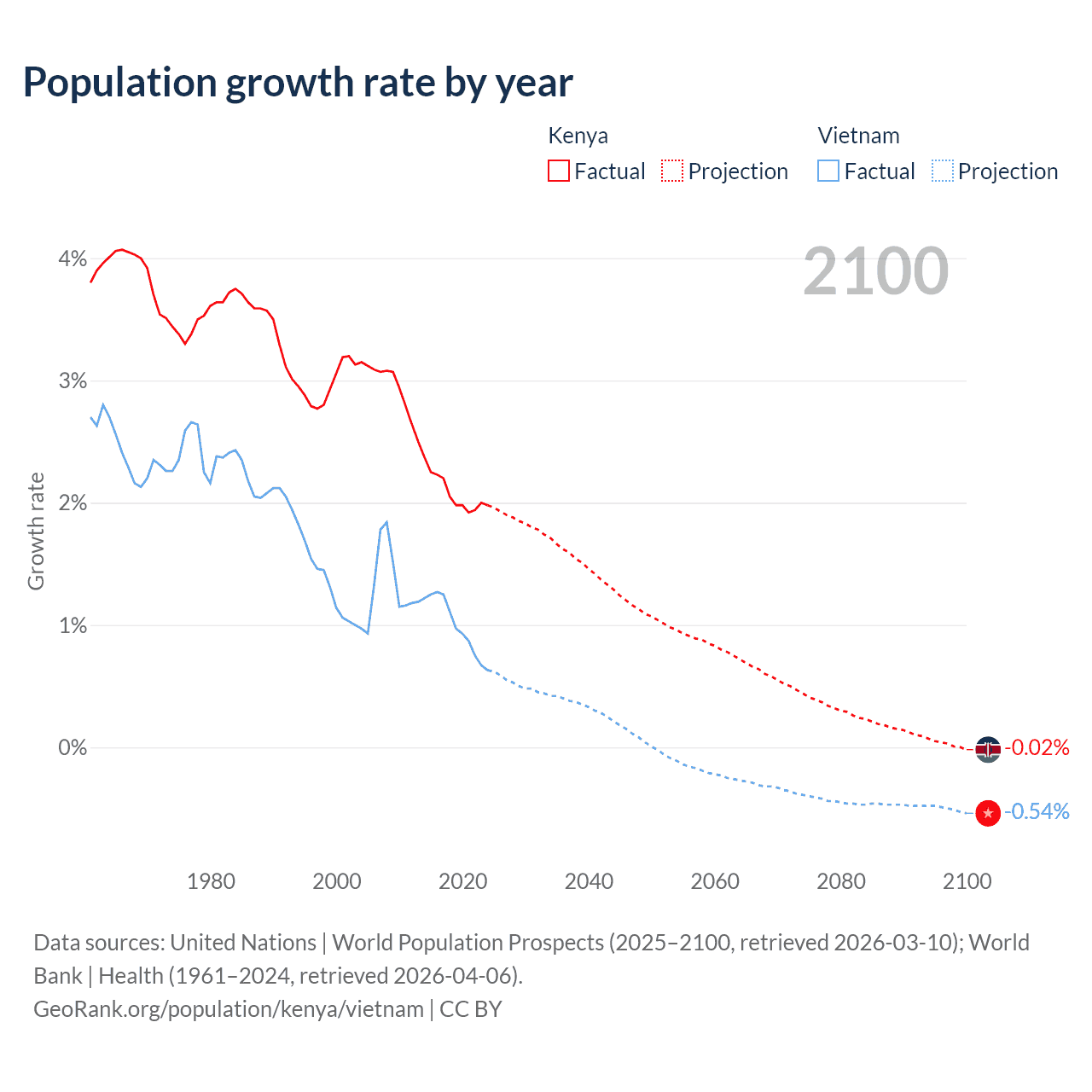 - For the last 10 years, Kenya has had an average growth rate of +2.08% per year vs +0.99% in Vietnam.