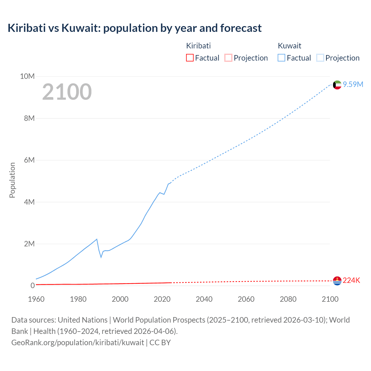 Kiribati vs Kuwait: population by year and forecast