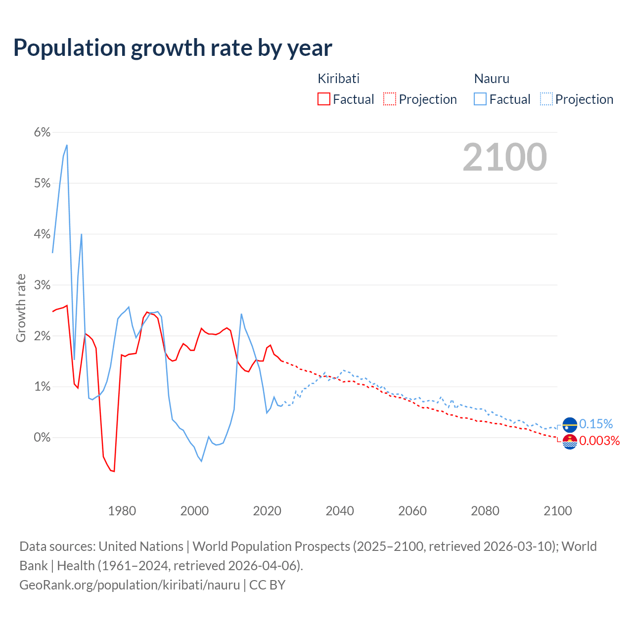 Kiribati vs Nauru: population by year and forecast