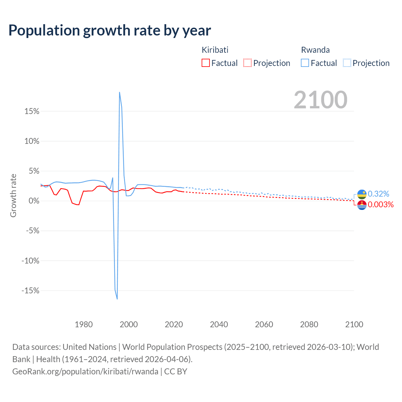 Kiribati vs Rwanda: population by year and forecast