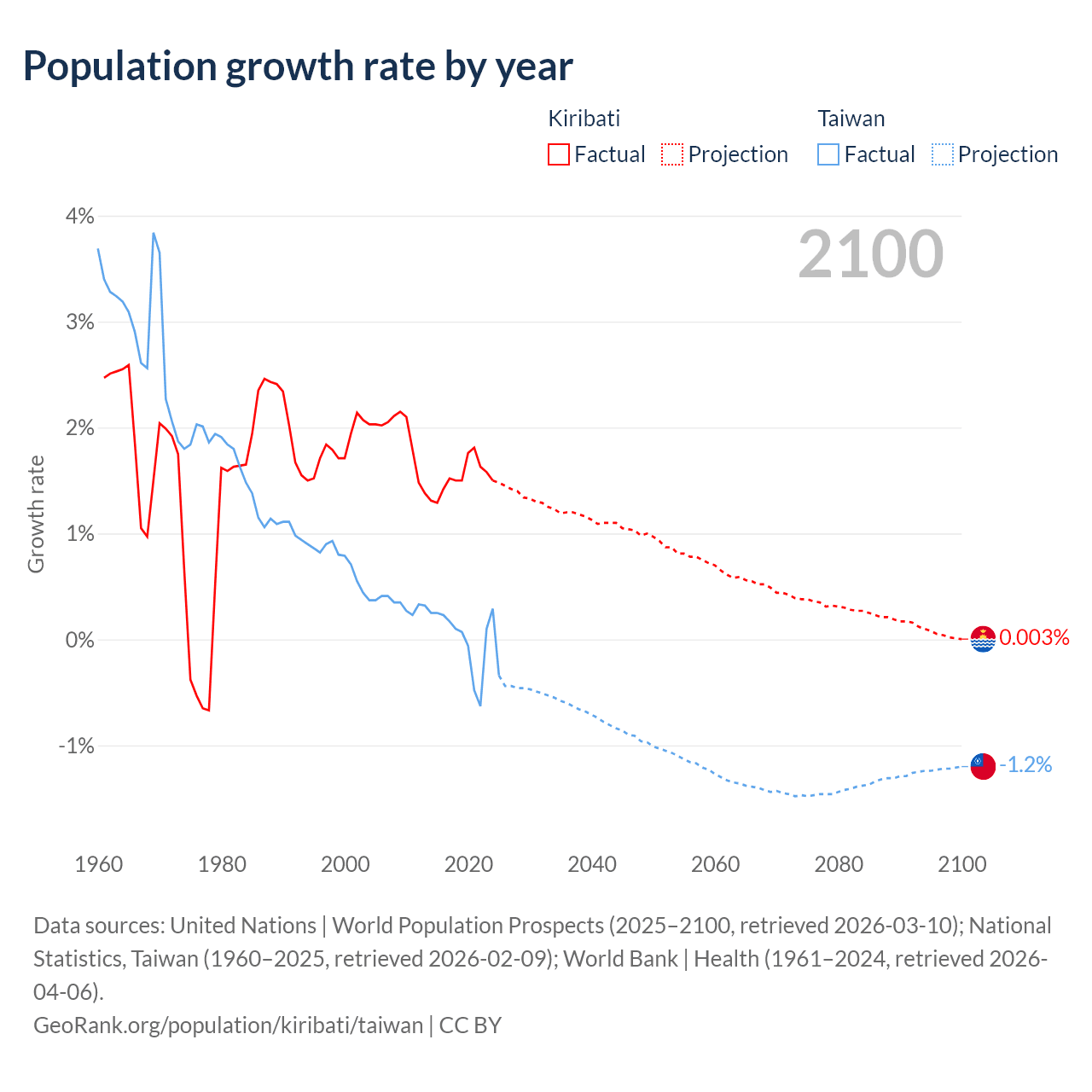 Data sources: World Bank | Health (1960–2024, retrieved 2026-04-06); United Nations | World Population Prospects (1960–2026, retrieved 2026-03-10); U.S. Census Bureau (1960–2025, retrieved 2026-02-08); National Statistics, Taiwan (1960–2025, retrieved 2026-02-09); Central Intelligence Agency (CIA) (2000–2019, retrieved 2026-02-20).