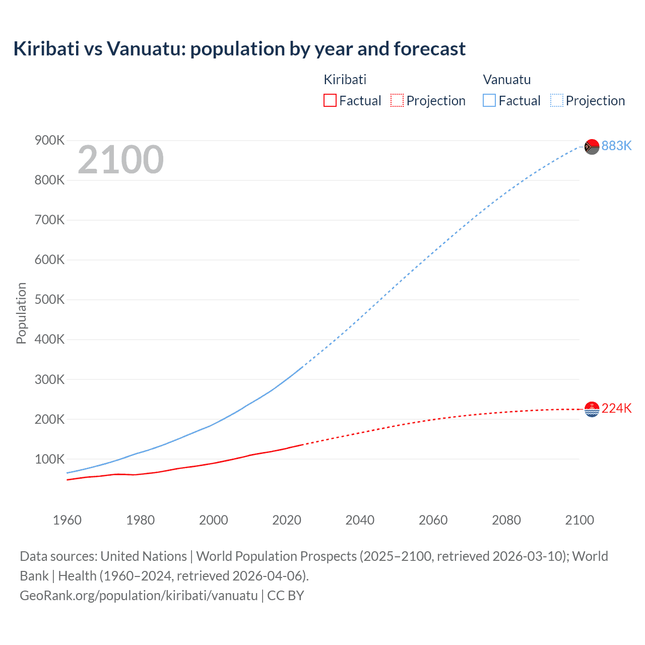 Kiribati vs Vanuatu: population by year and forecast