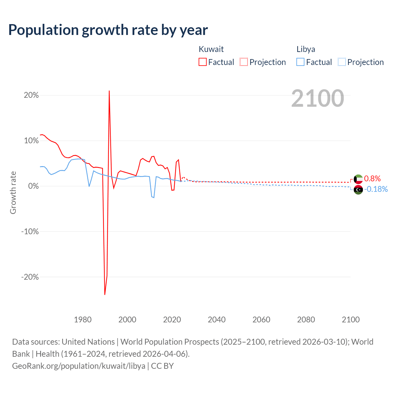 - For the last 10 years, Kuwait has had an average growth rate of +3.1% per year vs +1.44% in Libya.