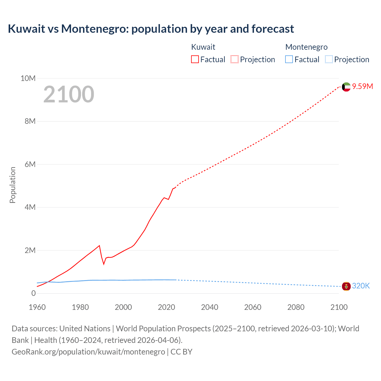 Kuwait vs Montenegro: population by year and forecast