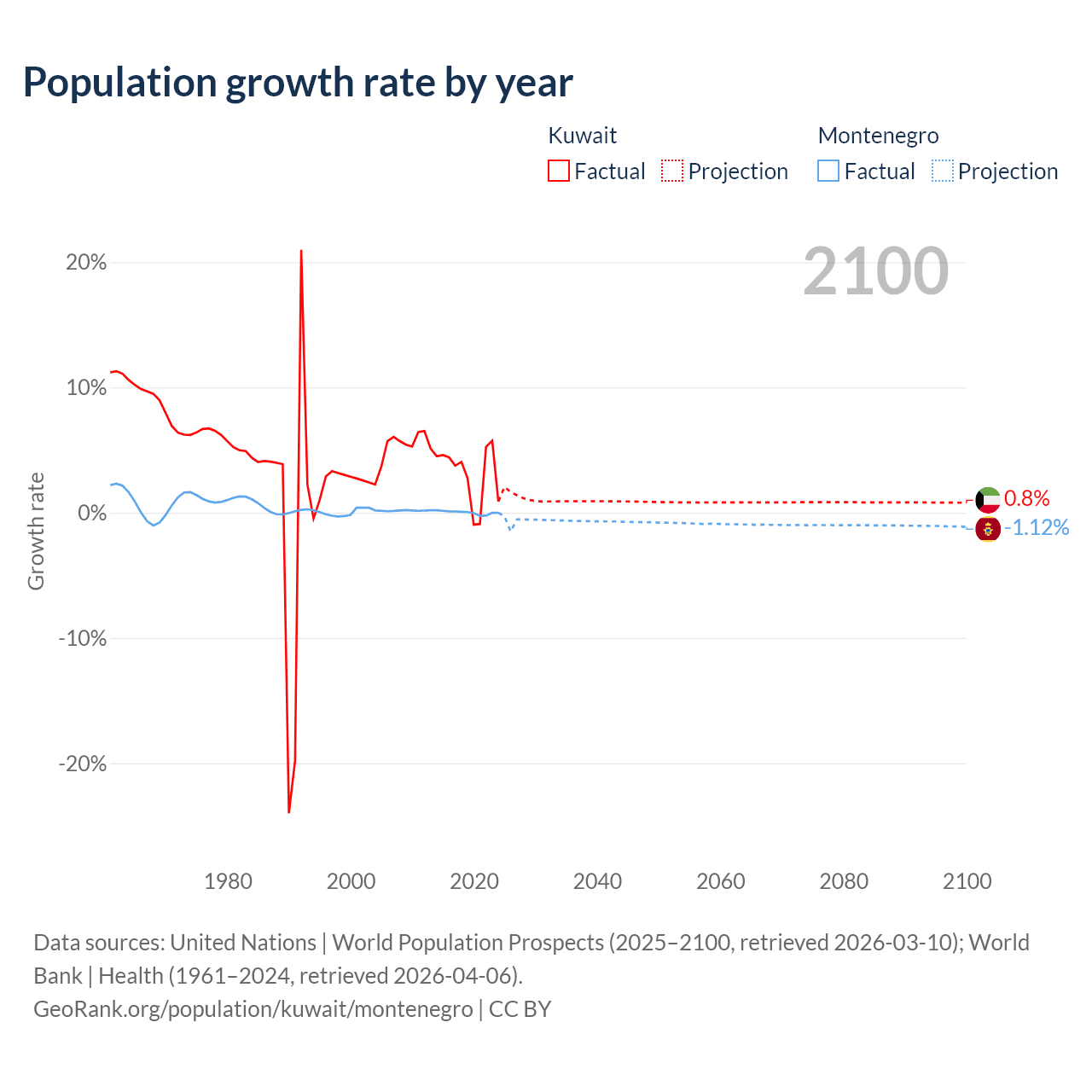 - For the last 10 years, Kuwait has had an average growth rate of +3.1% per year vs +0.01% in Montenegro.