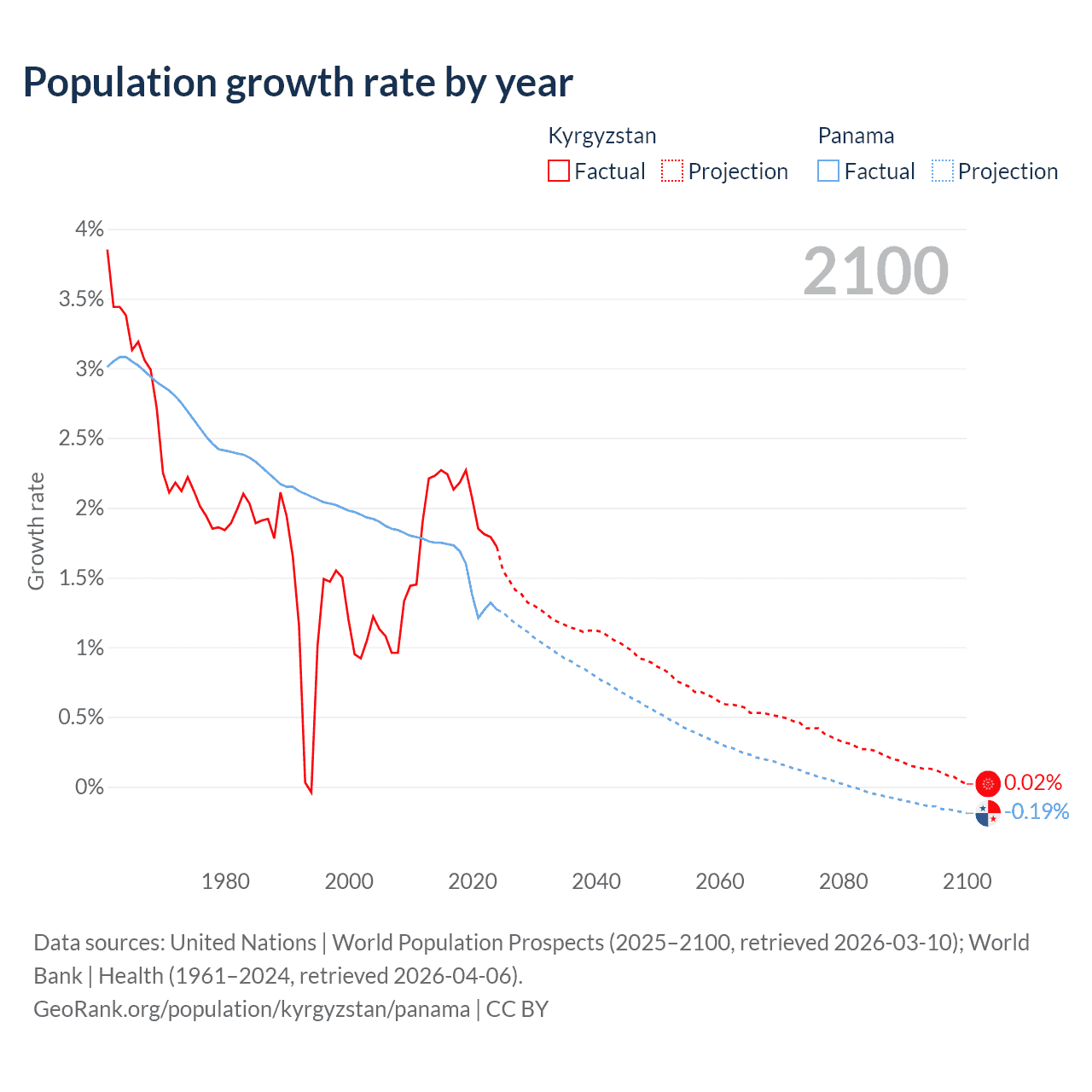 - For the last 10 years, Kyrgyzstan has had an average growth rate of +2.05% per year vs +1.52% in Panama.