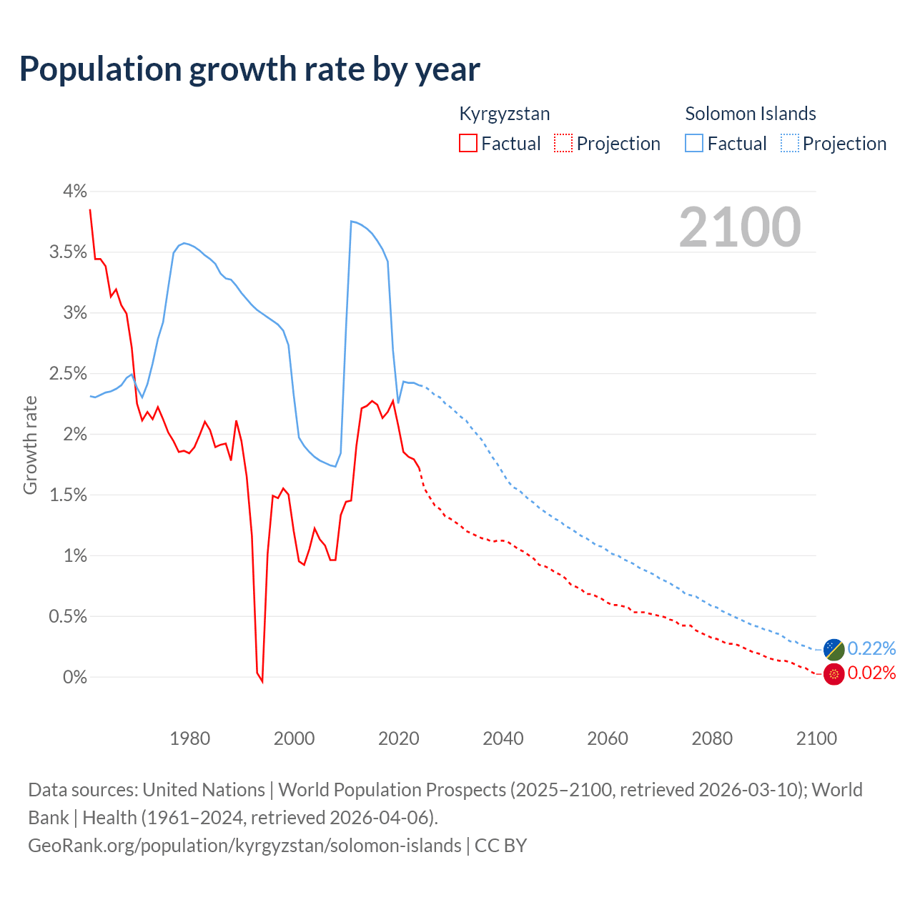 Kyrgyzstan vs Solomon Islands: population by year and forecast