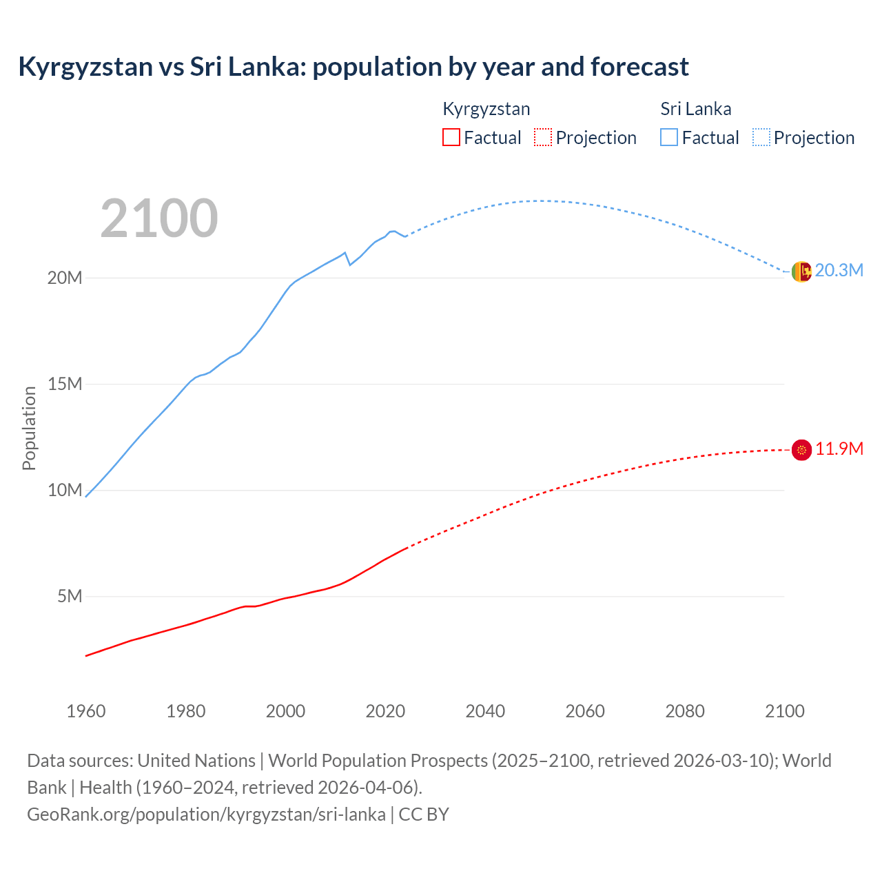 Kyrgyzstan vs Sri Lanka: population by year and forecast