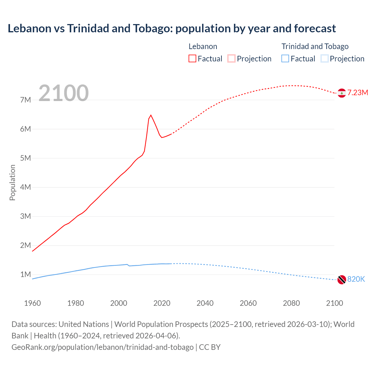 Lebanon vs Trinidad and Tobago: population by year and forecast