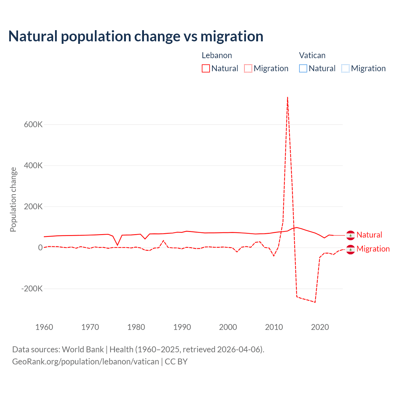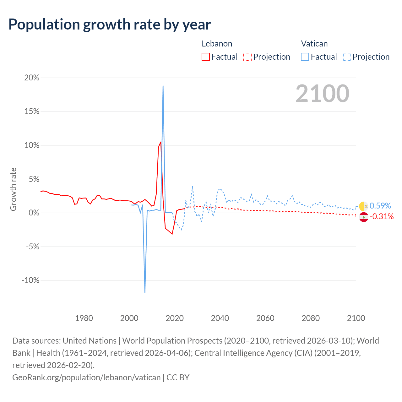 - For the last 10 years, Lebanon has had an average growth rate of +0.16% per year vs +1.9% in the Vatican.