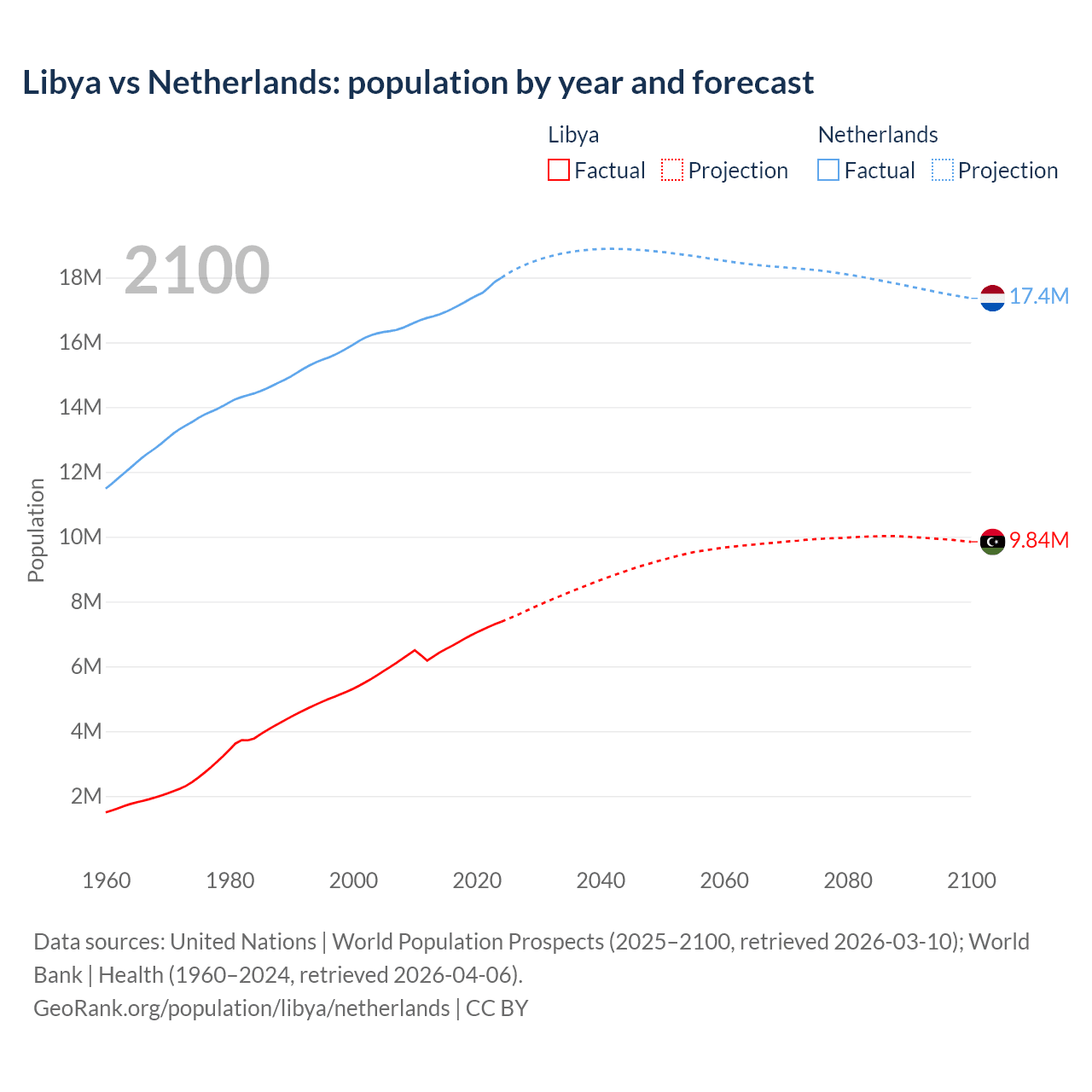 Libya vs Netherlands: population by year and forecast