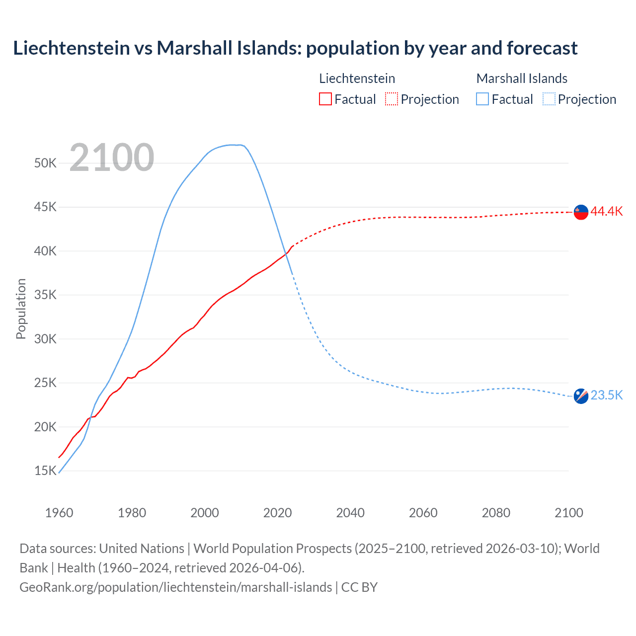 Liechtenstein vs Marshall Islands: population by year and forecast