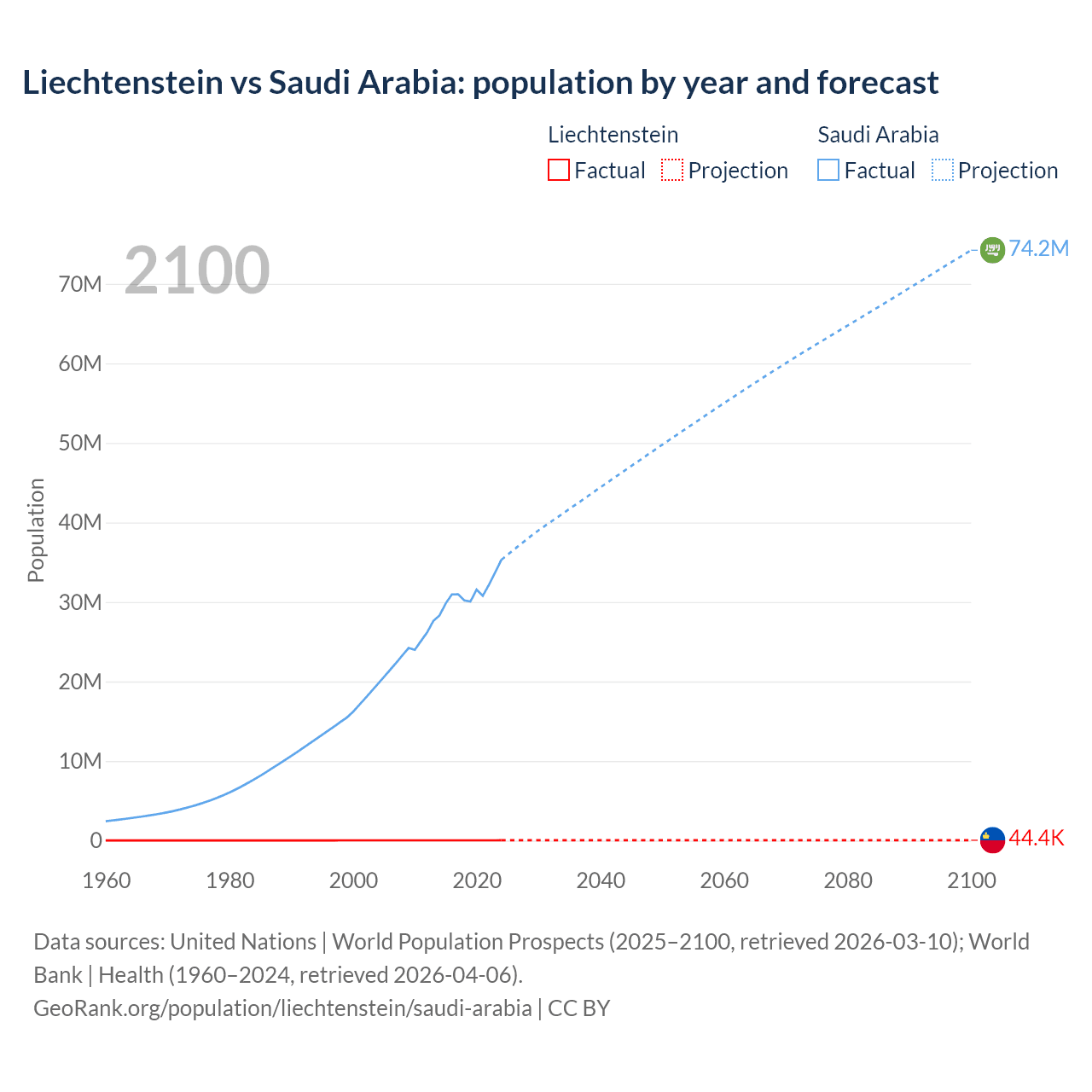Liechtenstein vs Saudi Arabia: population by year and forecast