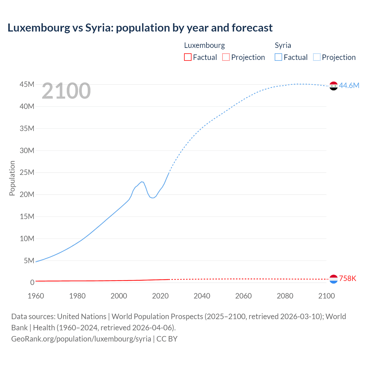Luxembourg vs Syria: population by year and forecast