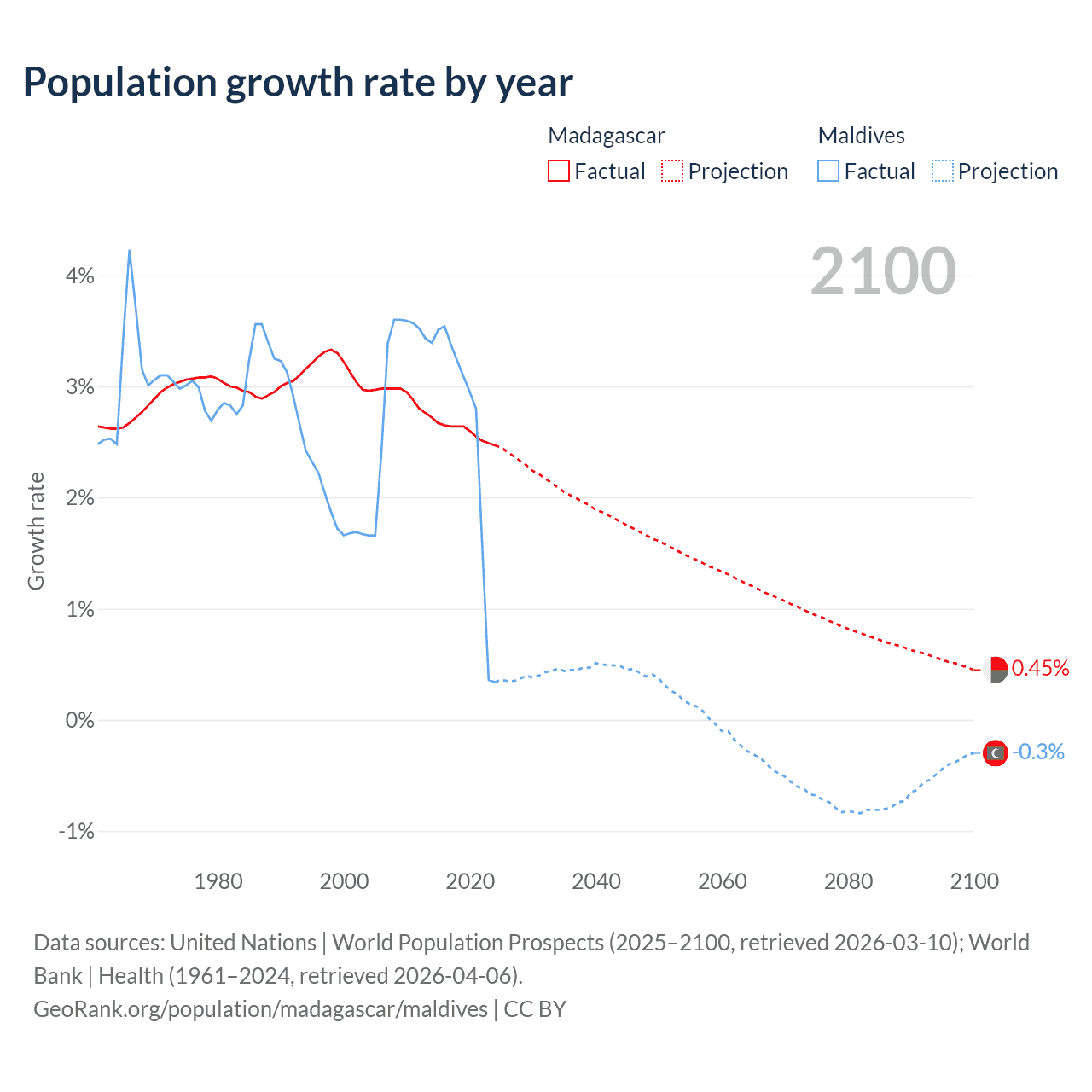 Data sources: World Bank | Health (1960–2024, retrieved 2026-04-06); United Nations | World Population Prospects (1960–2026, retrieved 2026-03-10); U.S. Census Bureau (1960–2025, retrieved 2026-02-08); Central Intelligence Agency (CIA) (2000–2019, retrieved 2026-02-20).