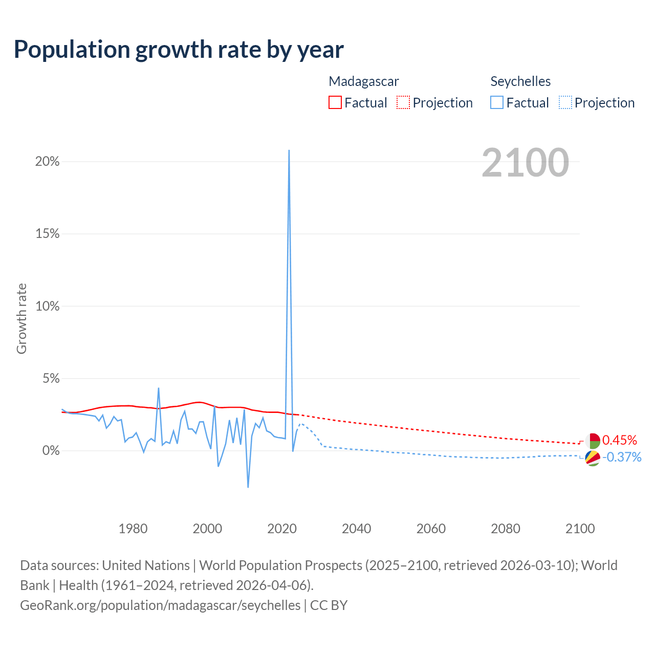Madagascar vs Seychelles: population by year and forecast