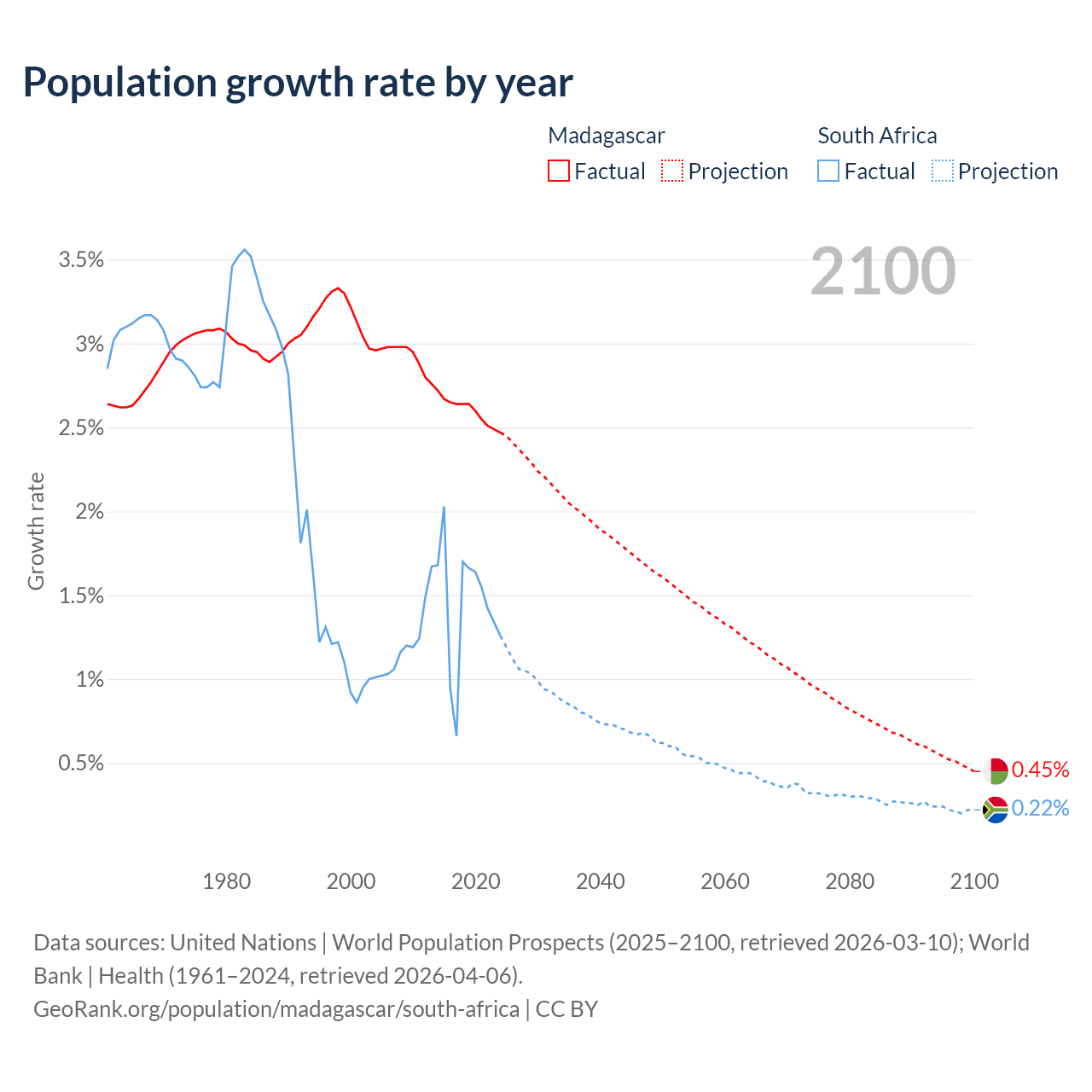 Madagascar vs South Africa: population by year and forecast