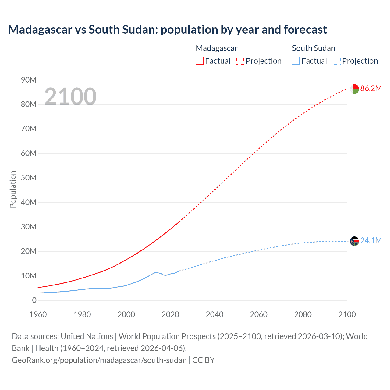 Population differences between Madagascar and South Sudan