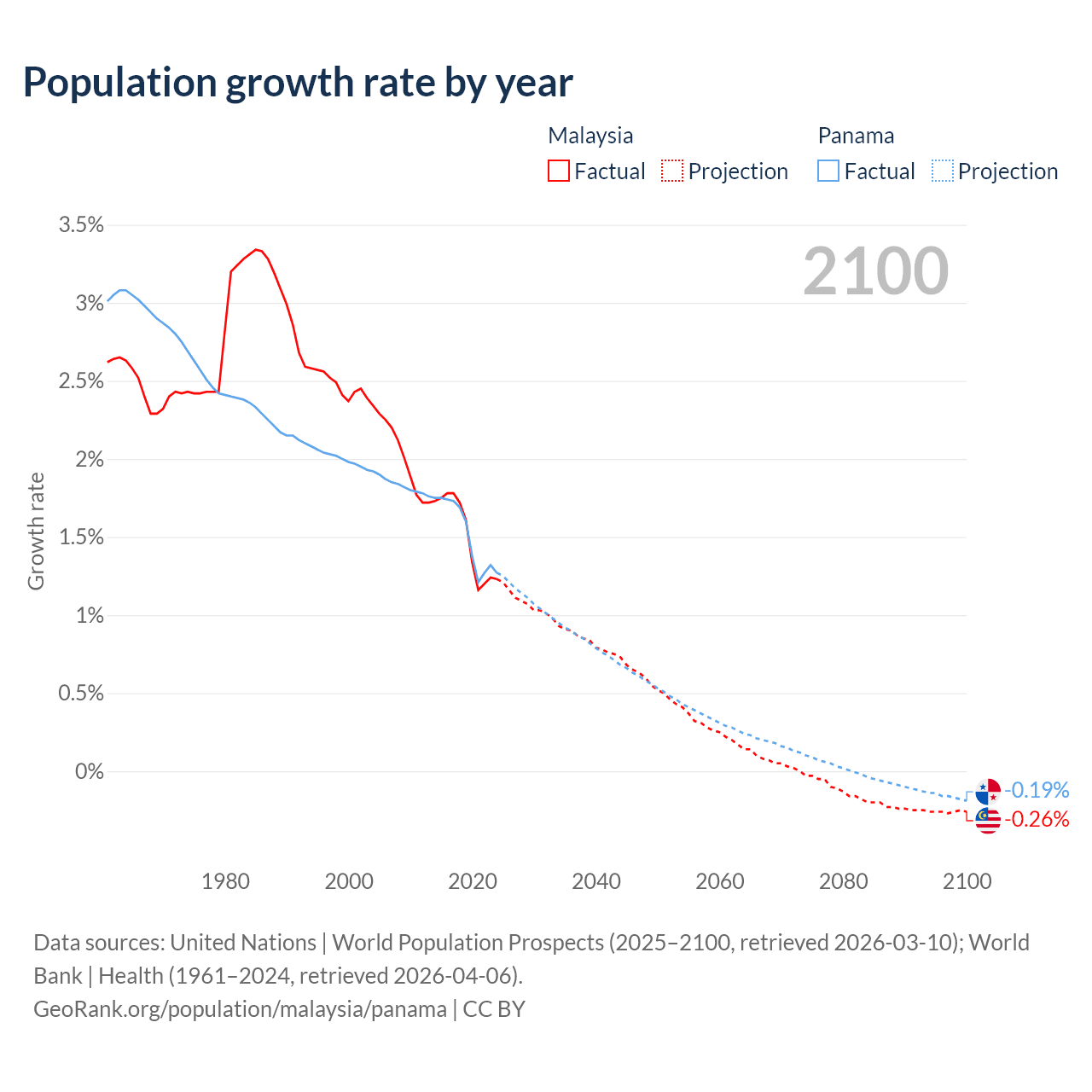 - For the last 10 years, Malaysia has had an average growth rate of +1.5% per year vs +1.52% in Panama.