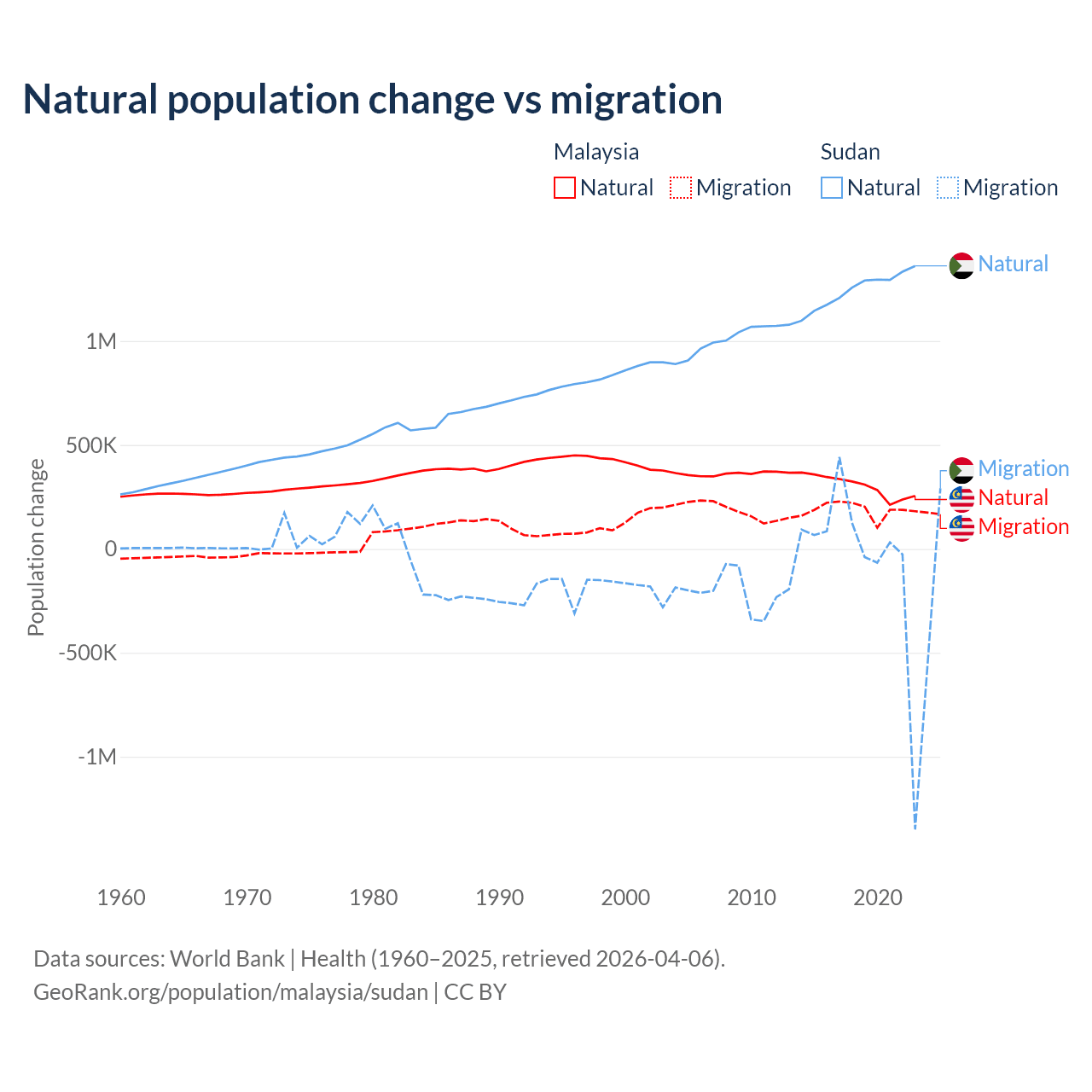 Population differences between Malaysia and Sudan