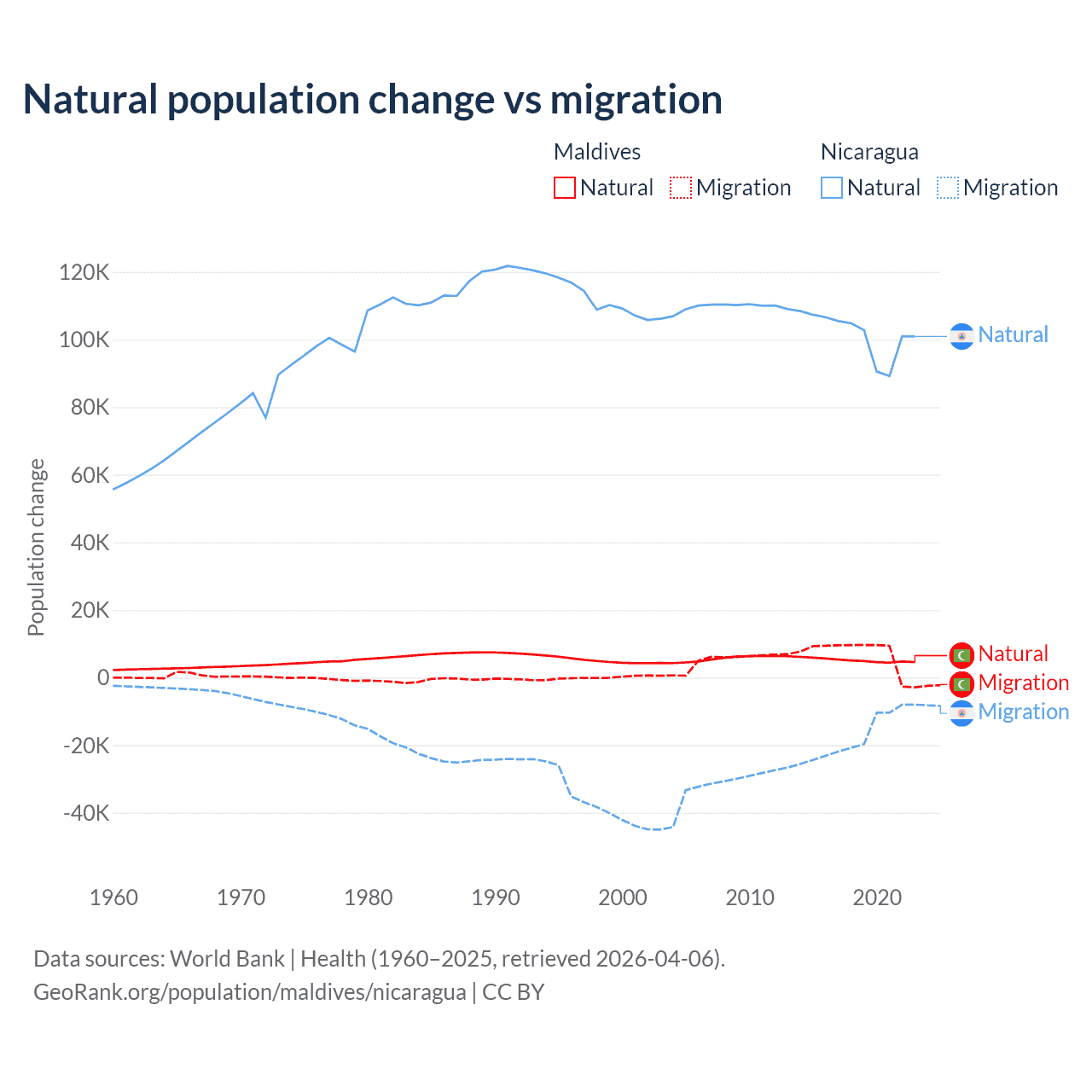 Data sources: World Bank | Health (1960–2025, retrieved 2026-04-06).