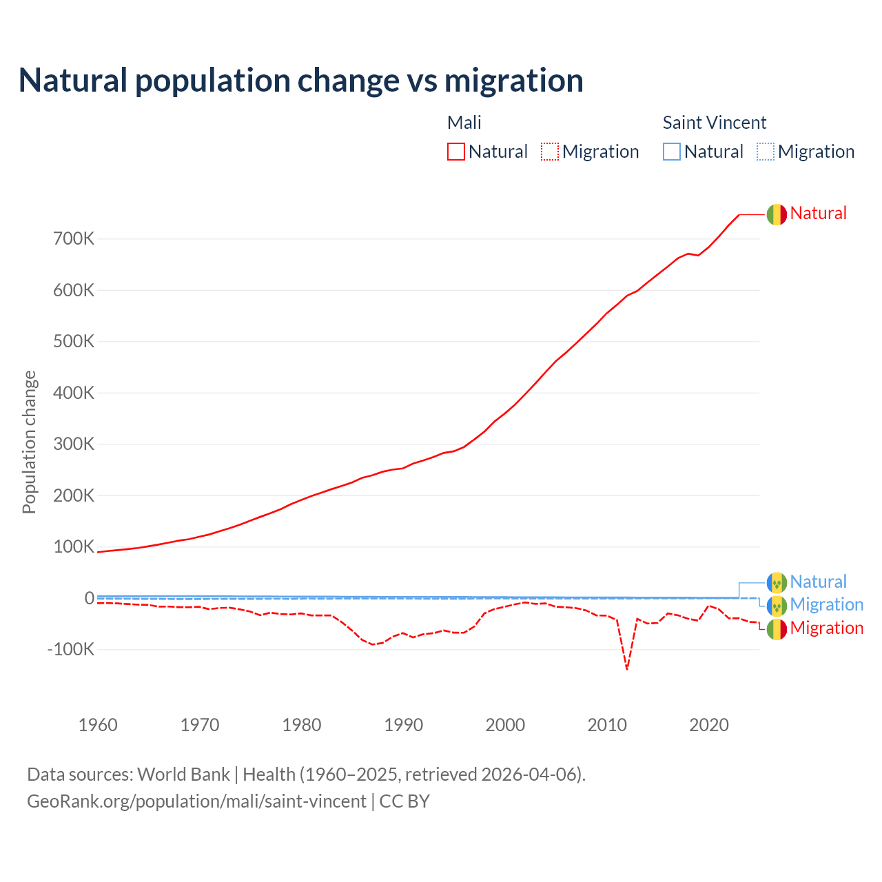 Population differences between Mali and Saint Vincent