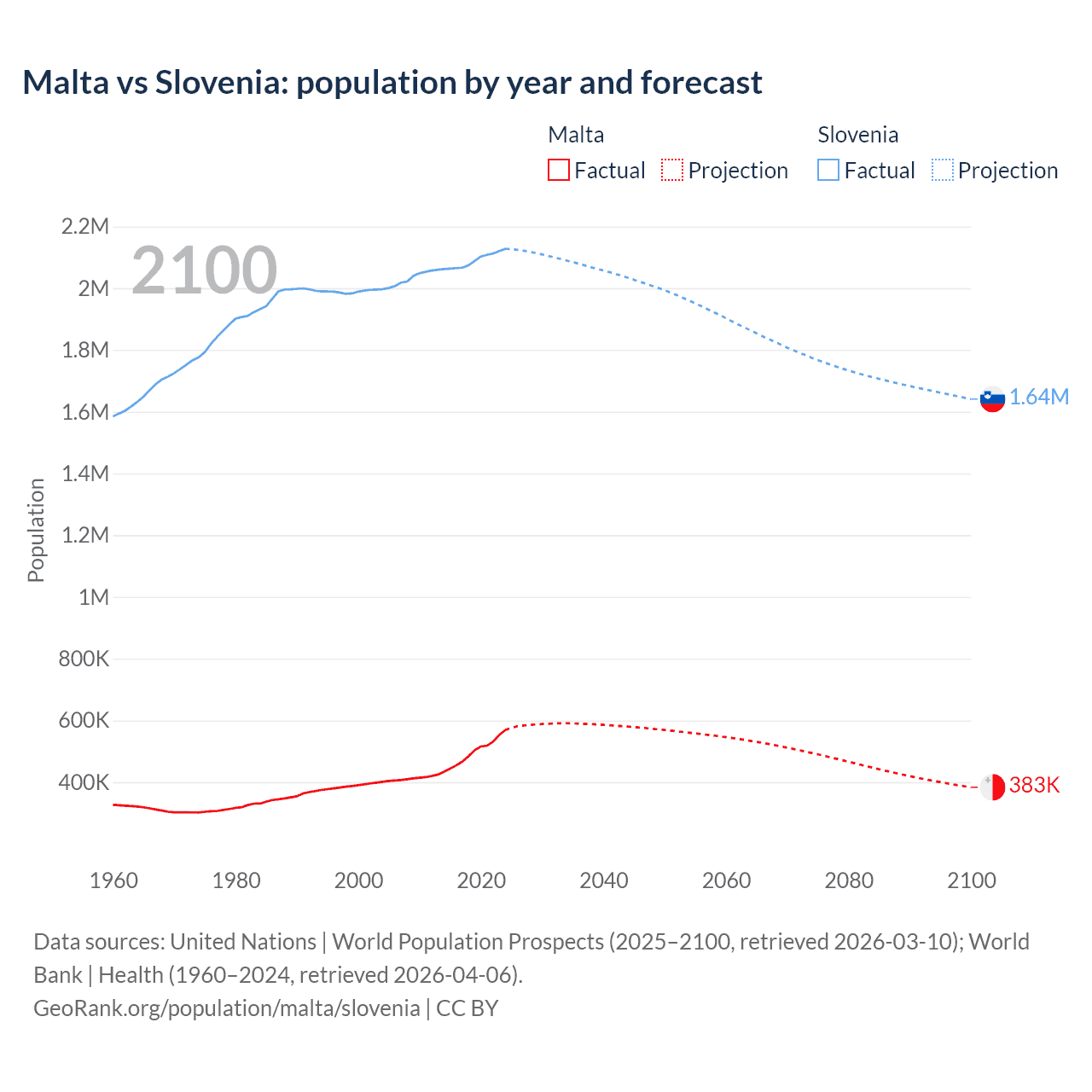 Malta vs Slovenia: population by year and forecast