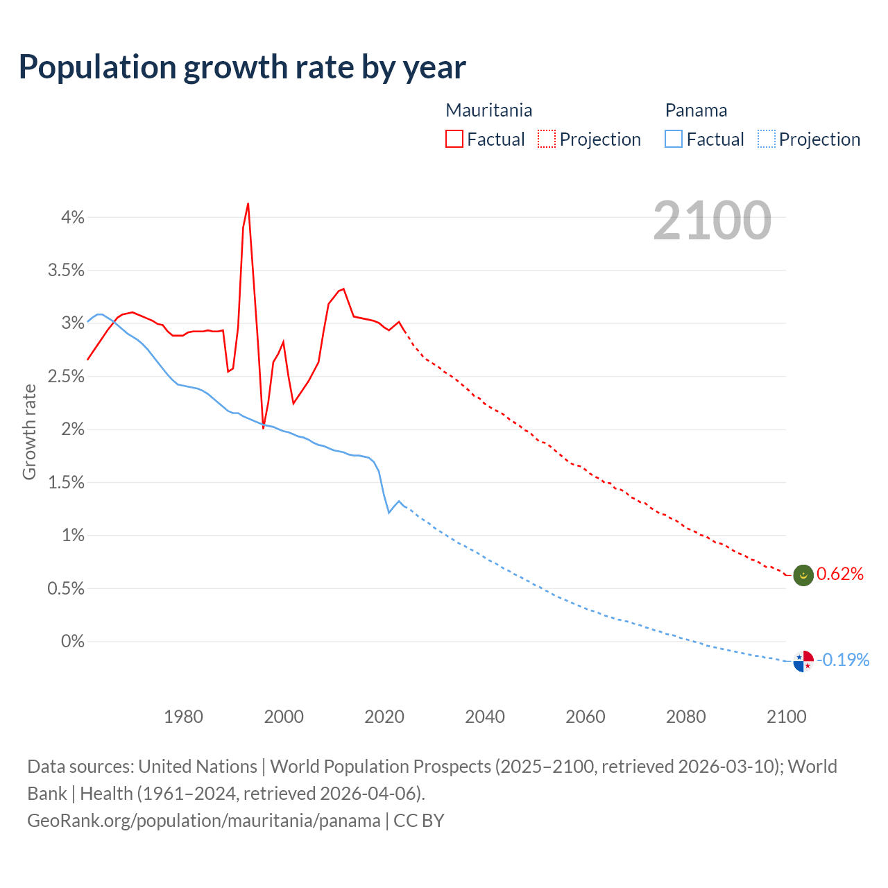 - For the last 10 years, Mauritania has had an average growth rate of +3% per year vs +1.52% in Panama.