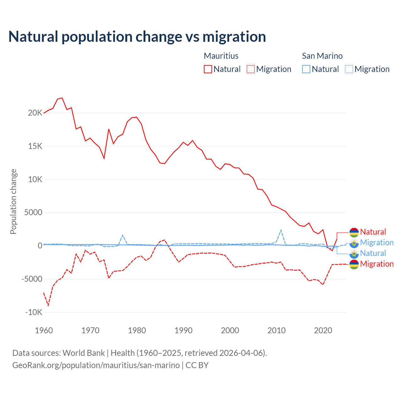Population differences between Mauritius and San Marino