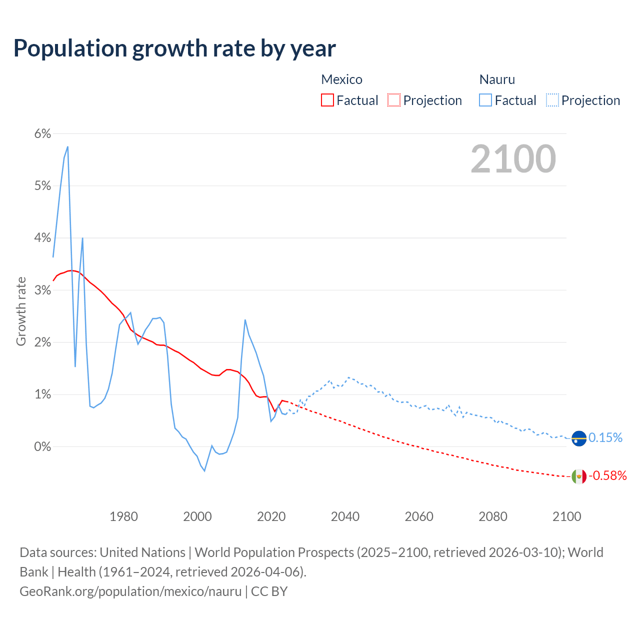 - For the last 10 years, Mexico has had an average growth rate of +0.92% per year vs +1.17% in Nauru.