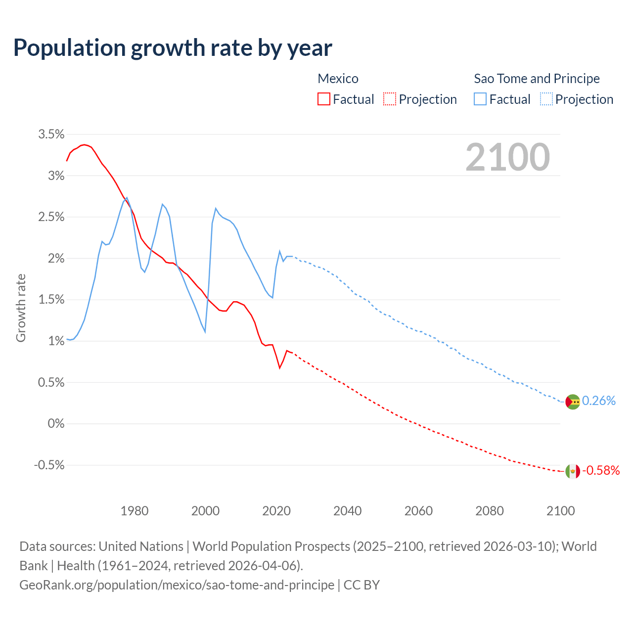 - For the last 10 years, Mexico has had an average growth rate of +0.92% per year vs +1.82% in Sao Tome and Principe.