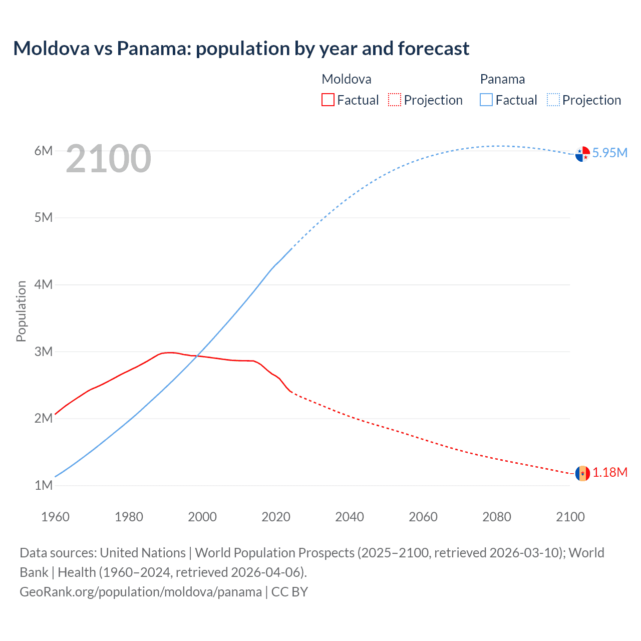 Moldova vs Panama: population by year and forecast