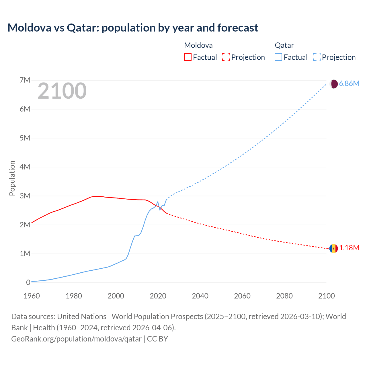Moldova vs Qatar: population by year and forecast