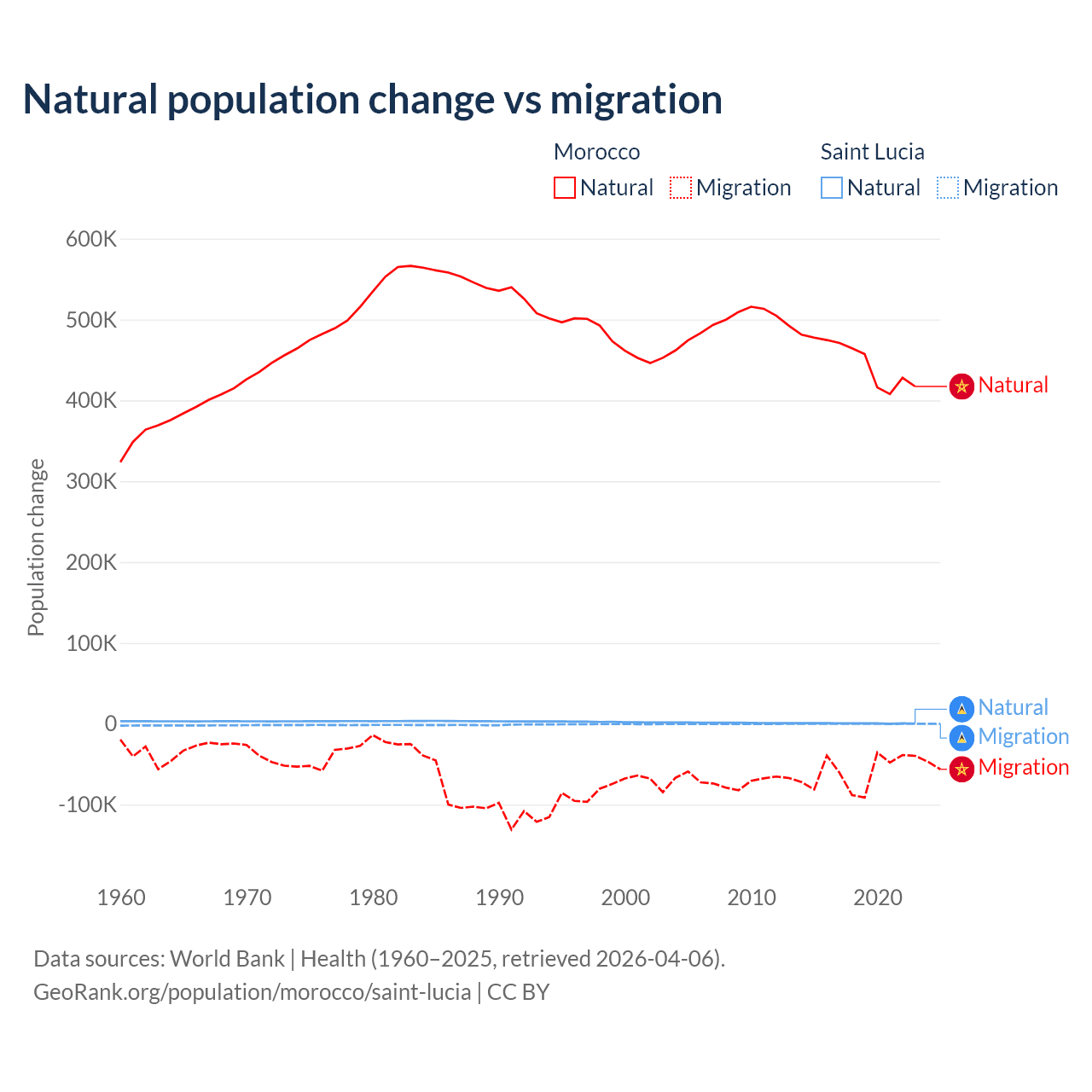 Population differences between Morocco and Saint Lucia