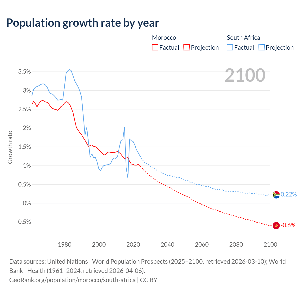Morocco vs South Africa: population by year and forecast