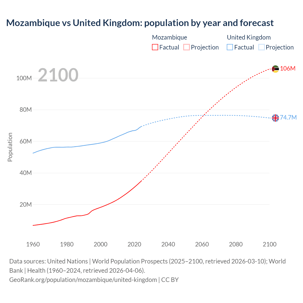 Population differences between Mozambique and the United Kingdom