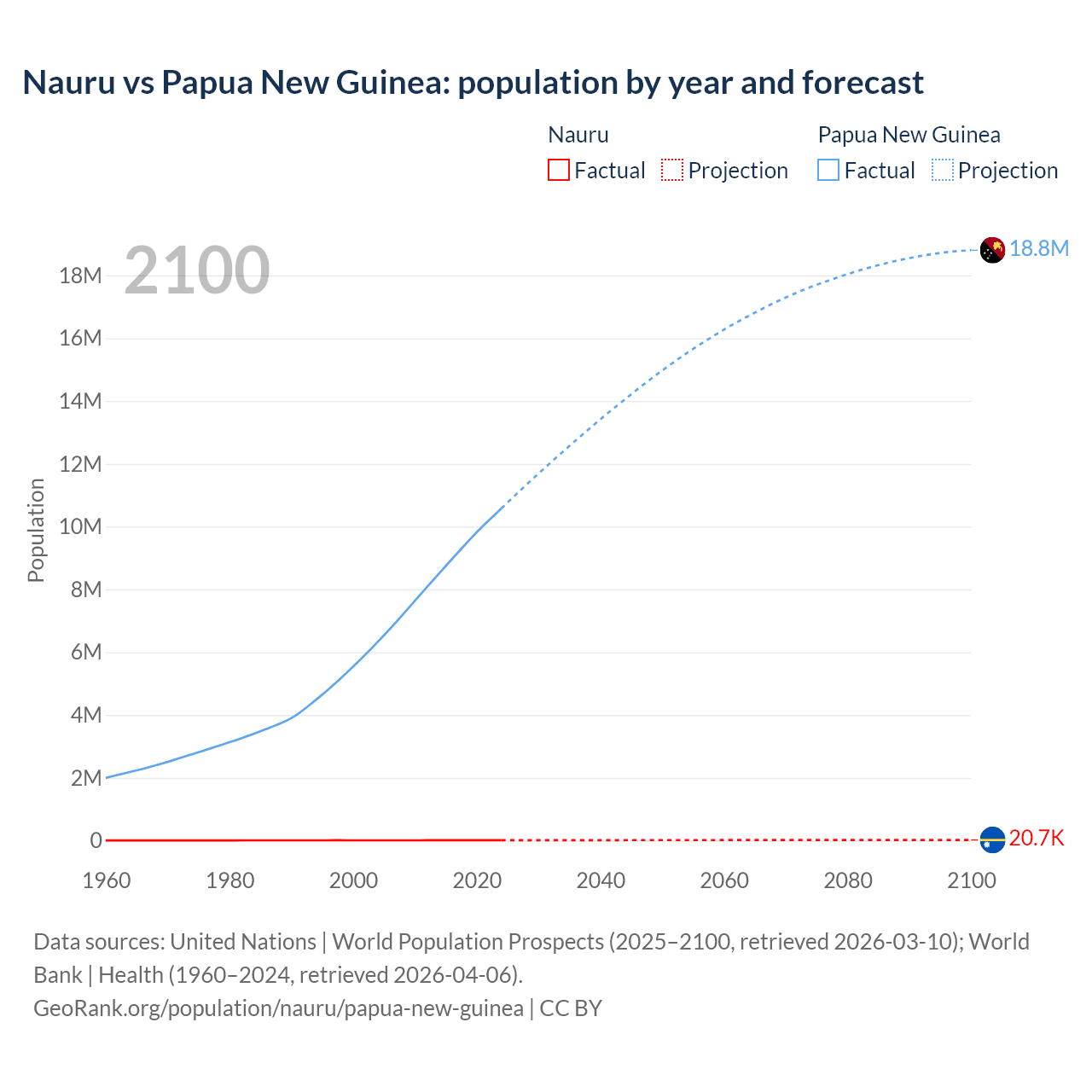 Nauru vs Papua New Guinea: population by year and forecast