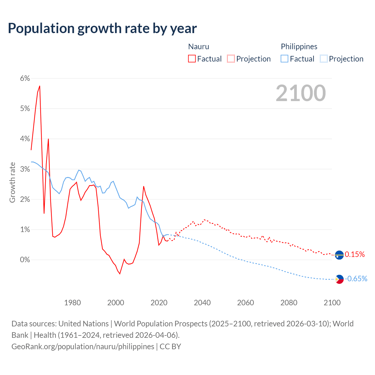 - For the last 10 years, Nauru has had an average growth rate of +1.17% per year vs +1.16% in the Philippines.