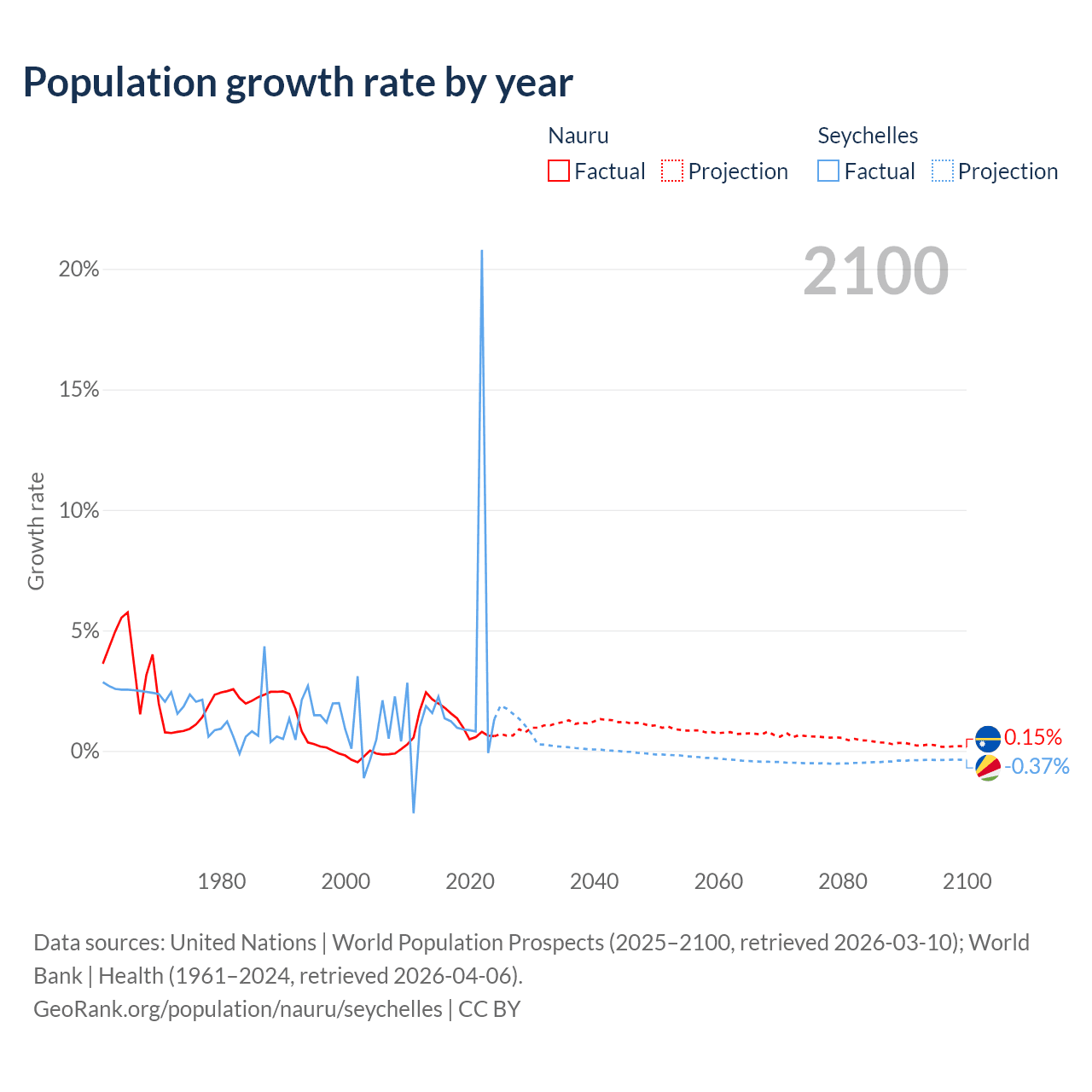 Nauru vs Seychelles: population by year and forecast