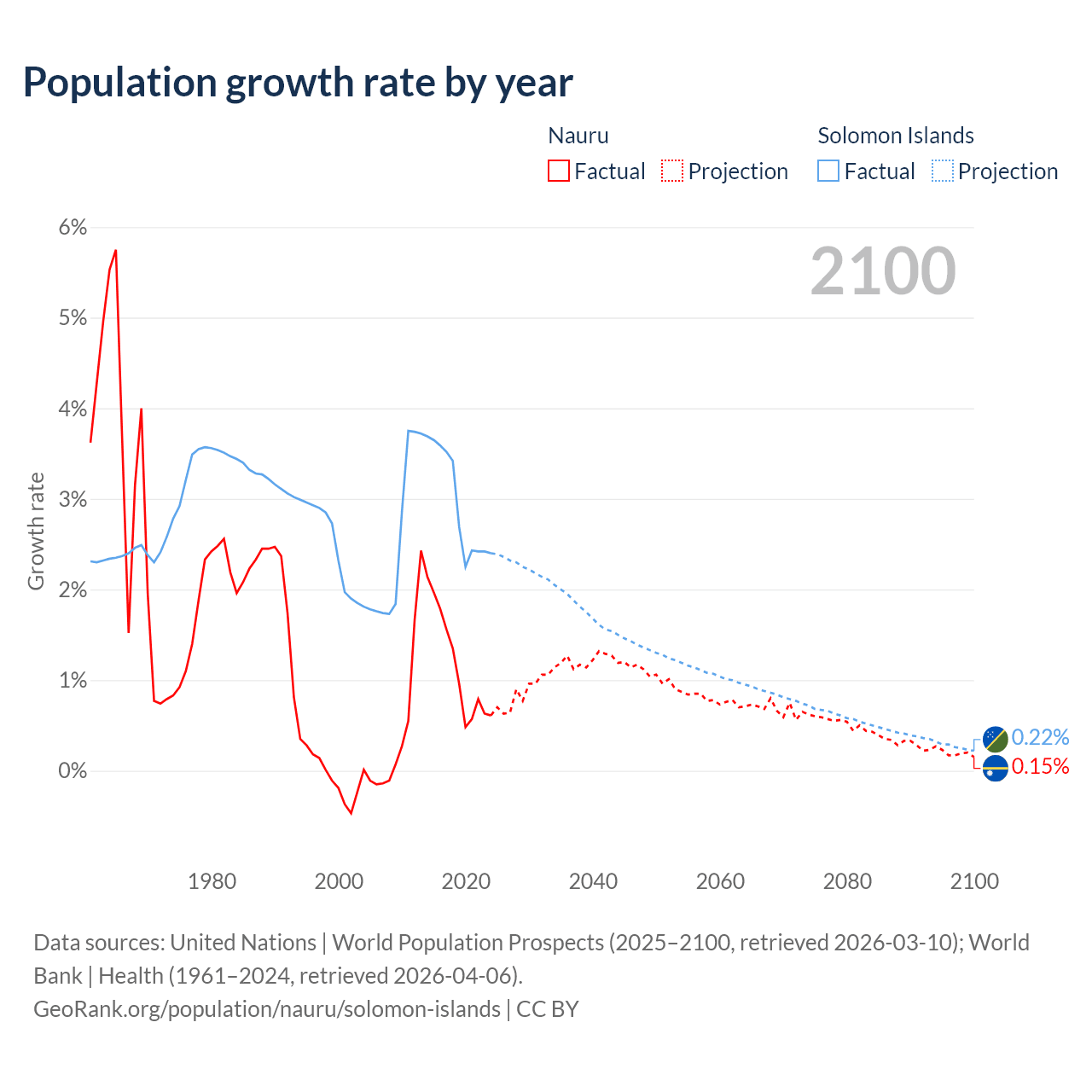 Nauru vs Solomon Islands: population by year and forecast