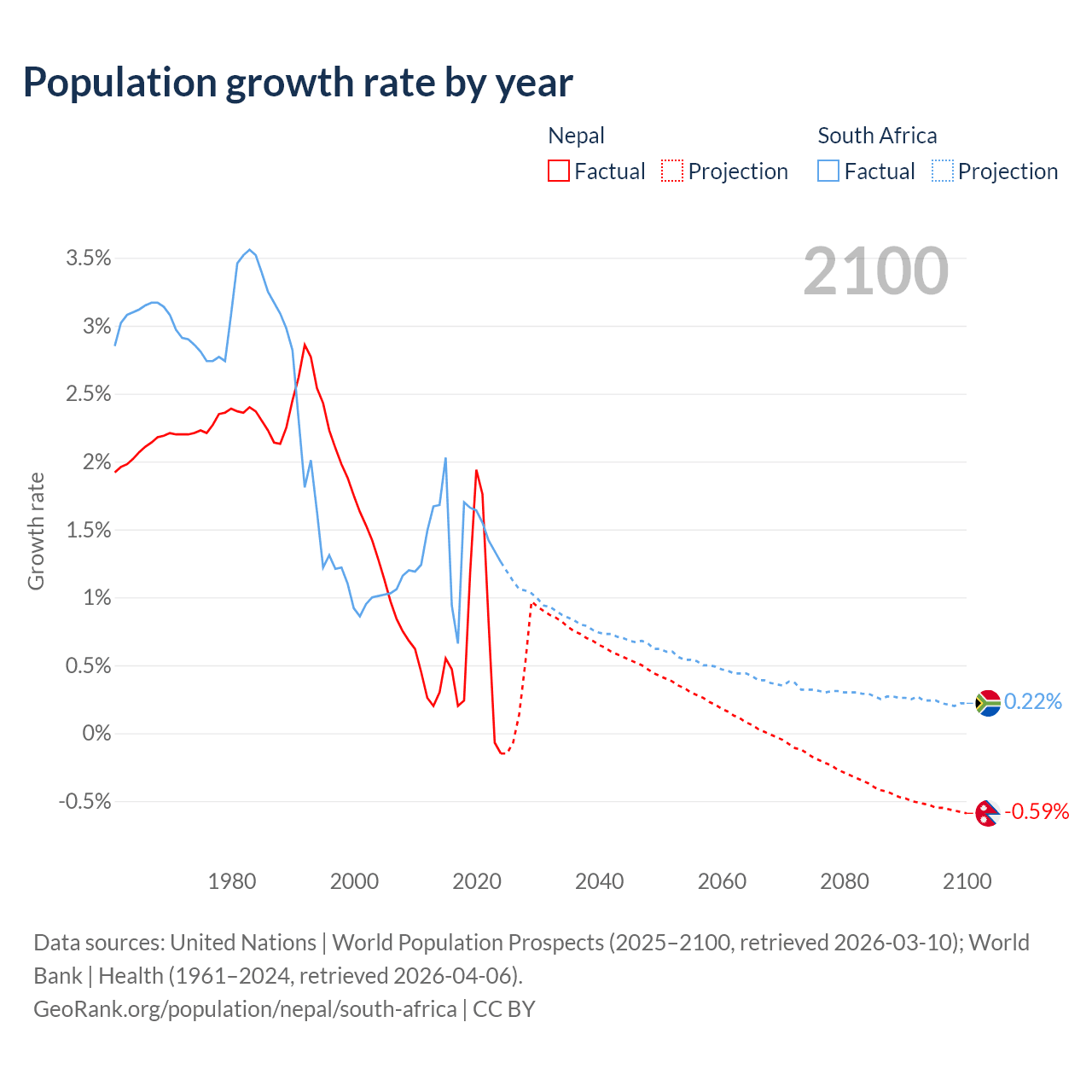 Data sources: World Bank | Health (1960–2024, retrieved 2026-04-06); United Nations | World Population Prospects (1960–2026, retrieved 2026-03-10); U.S. Census Bureau (1960–2025, retrieved 2026-02-08); Central Intelligence Agency (CIA) (2000–2019, retrieved 2026-02-20).