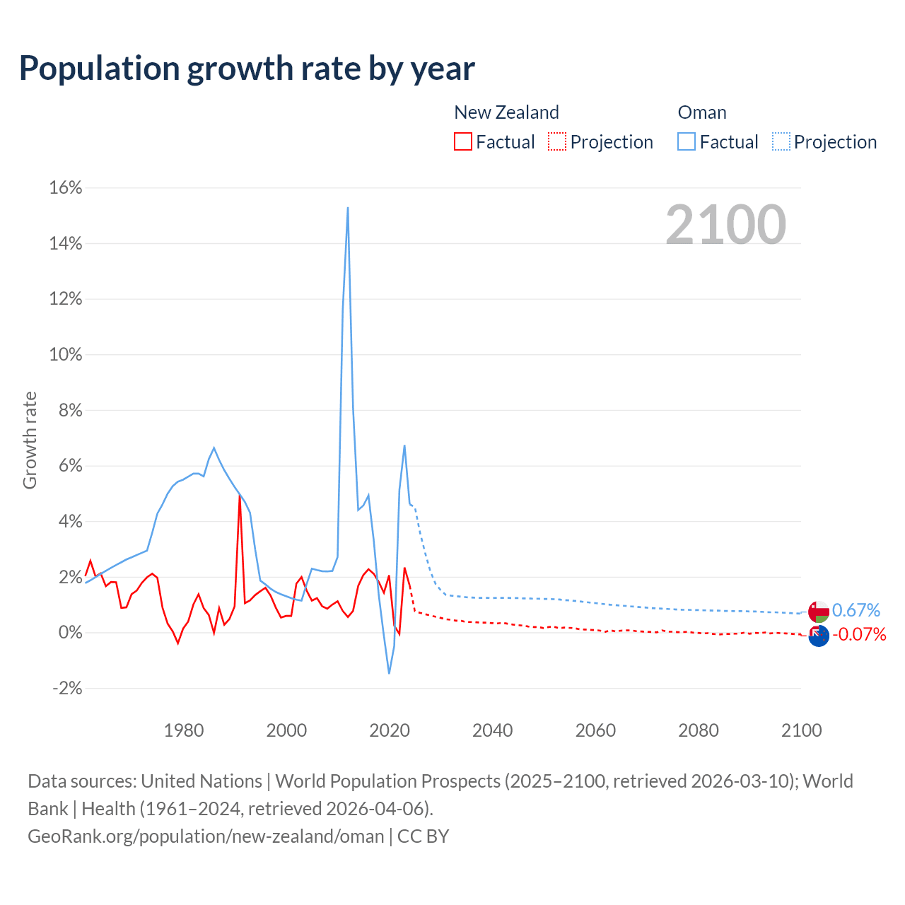- For the last 10 years, New Zealand has had an average growth rate of +1.6% per year vs +2.99% in Oman.