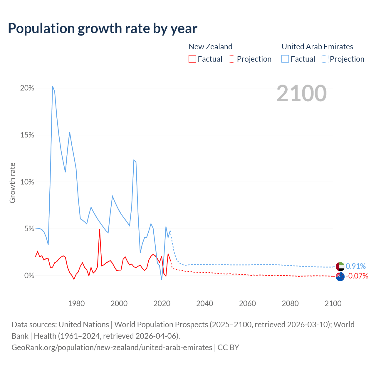 - For the last 10 years, New Zealand has had an average growth rate of +1.6% per year vs +3.31% in the United Arab Emirates.
