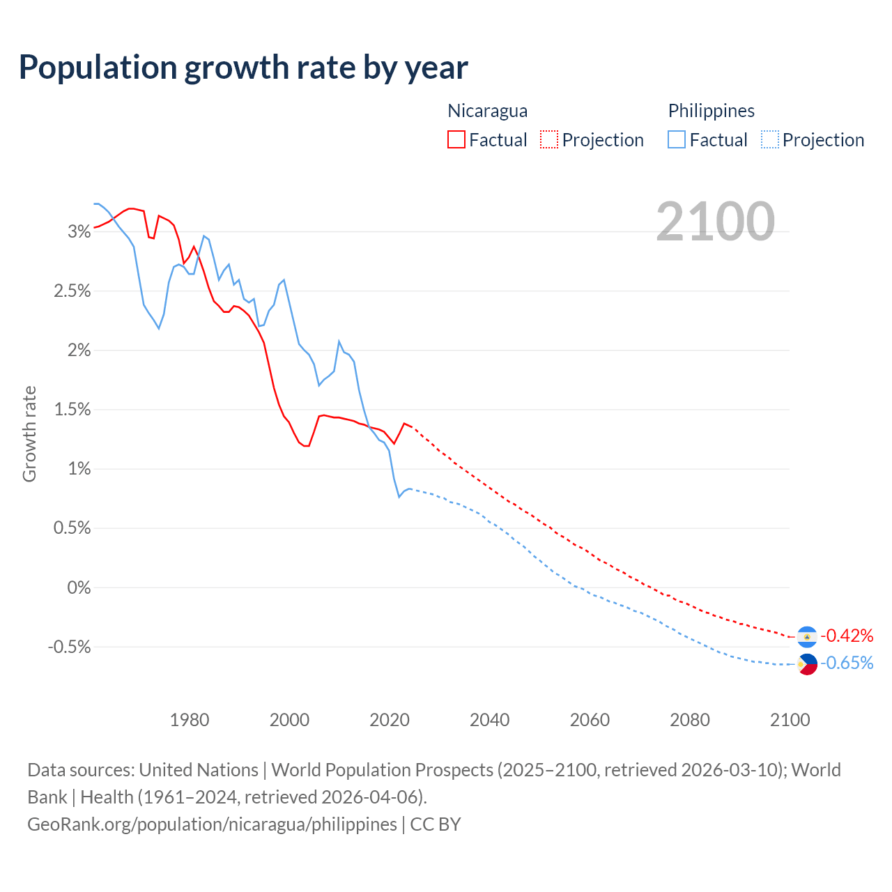 Data sources: World Bank | Health (1960–2024, retrieved 2026-04-06); United Nations | World Population Prospects (1960–2026, retrieved 2026-03-10); U.S. Census Bureau (1960–2025, retrieved 2026-02-08); Central Intelligence Agency (CIA) (2000–2019, retrieved 2026-02-20).