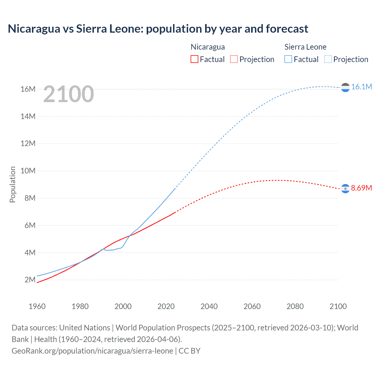 Population differences between Nicaragua and Sierra Leone